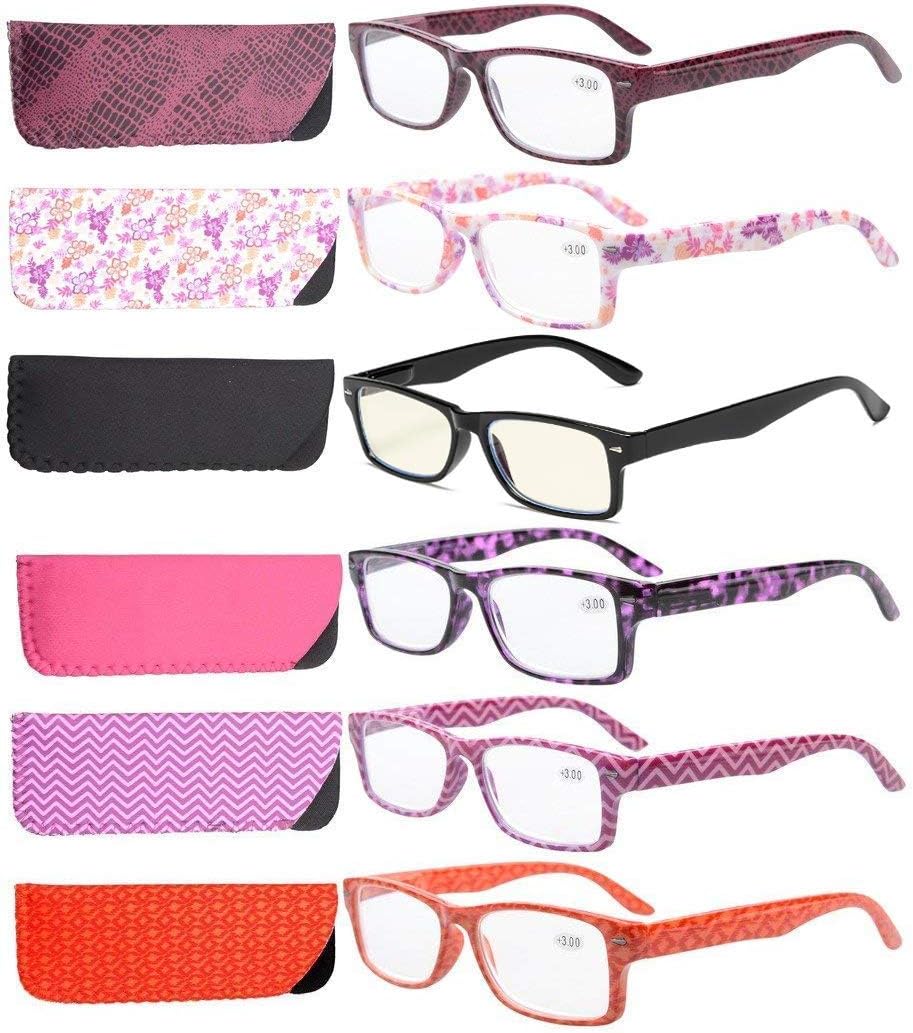 Eyekepper 6-Pack Spring Hinges Patterned Rectangular Reading Glasses Include Computer Readers Women +1.5