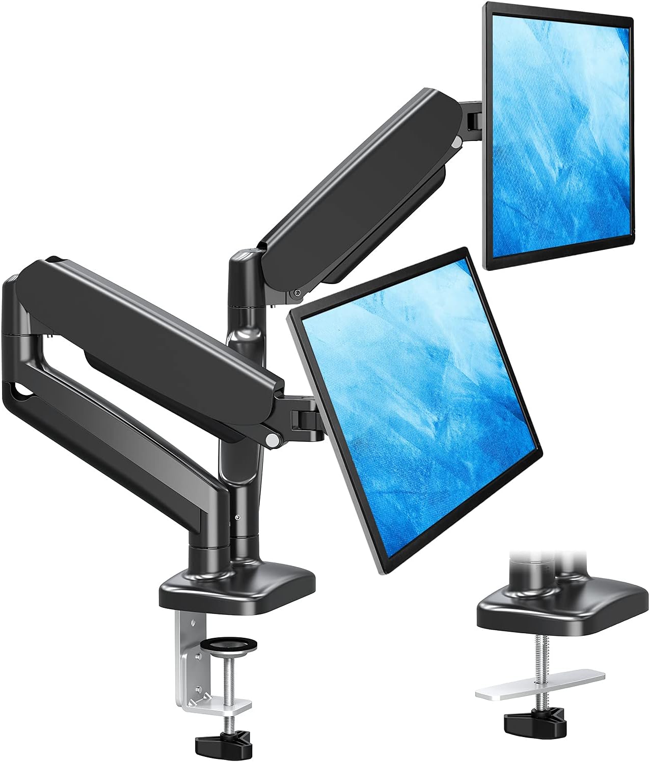 MOUNTUP Dual Monitor Stand, Fully Adjustable Gas Spring Dual Monitor Mount, Monitor Desk Mount with C Clamp, Grommet Mounting Base, Double Monitor Arm for 2 Computer Screen up to 32 Inch, MU0005