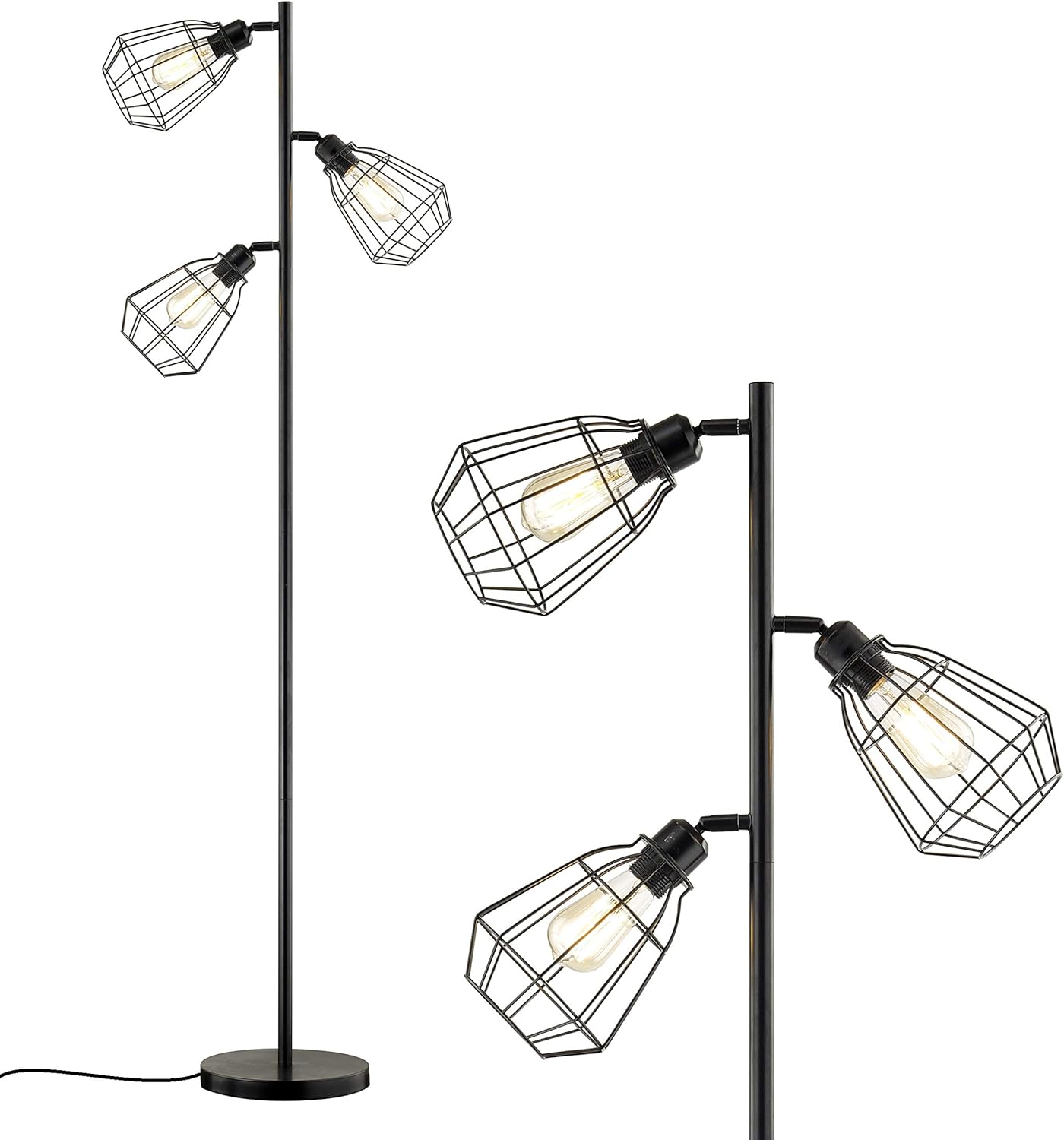 - Elegant Appearance: a charming, rustic industrial style, and practical floor lamp to meet your basic lighting needs. This 3 light tree floor lamp with reading light features black finish metal shades. Perfect for living room, bedrooms, office, kids room, or college dorm.