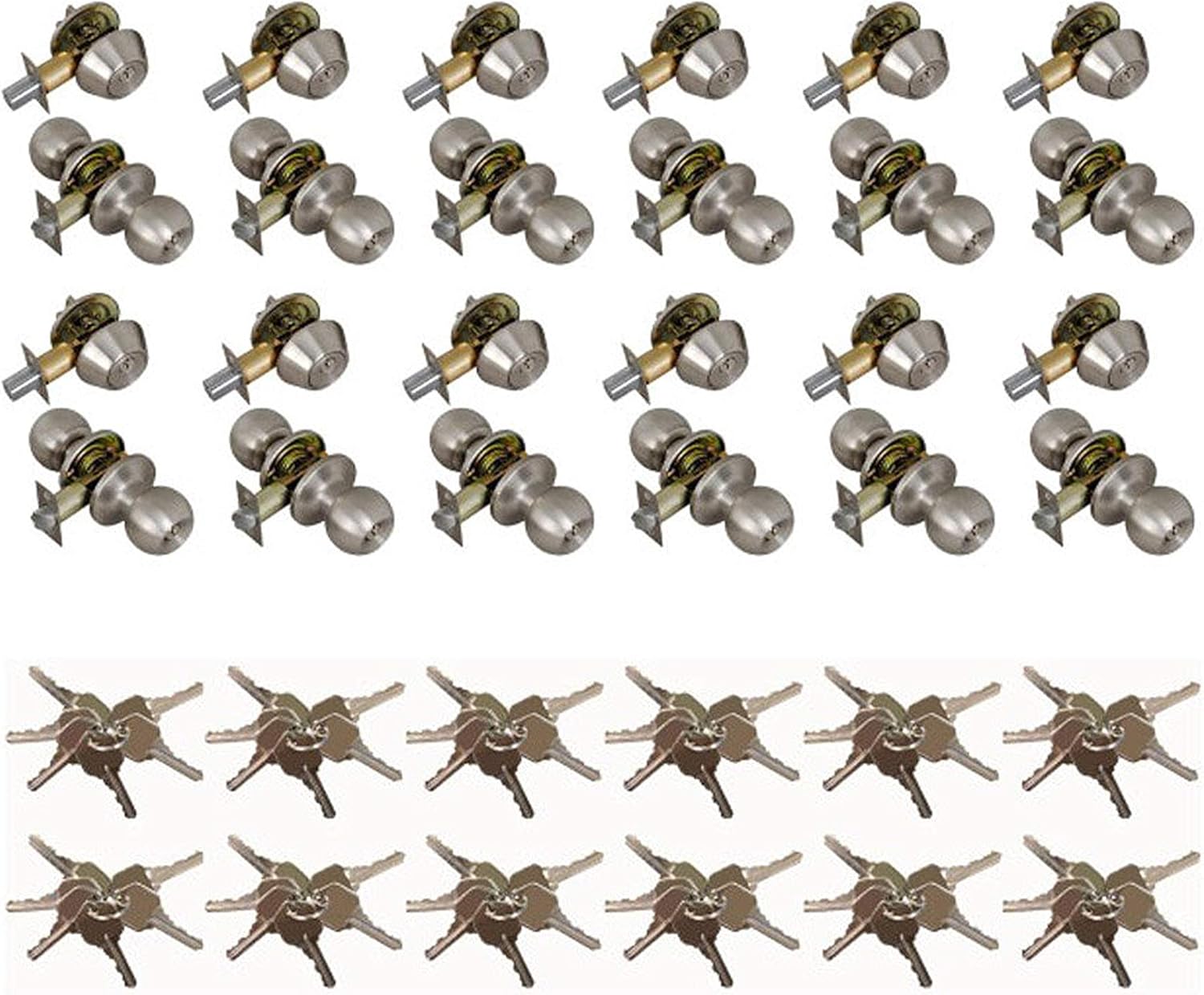 Grip Tight Tools ED03-12 Combo Entry Lock Set Door Knob and Single Cylinder Deadbolt Alike: KW1 Keyway with 72 Keys Included, Set of 12, Satin Stainless Steel