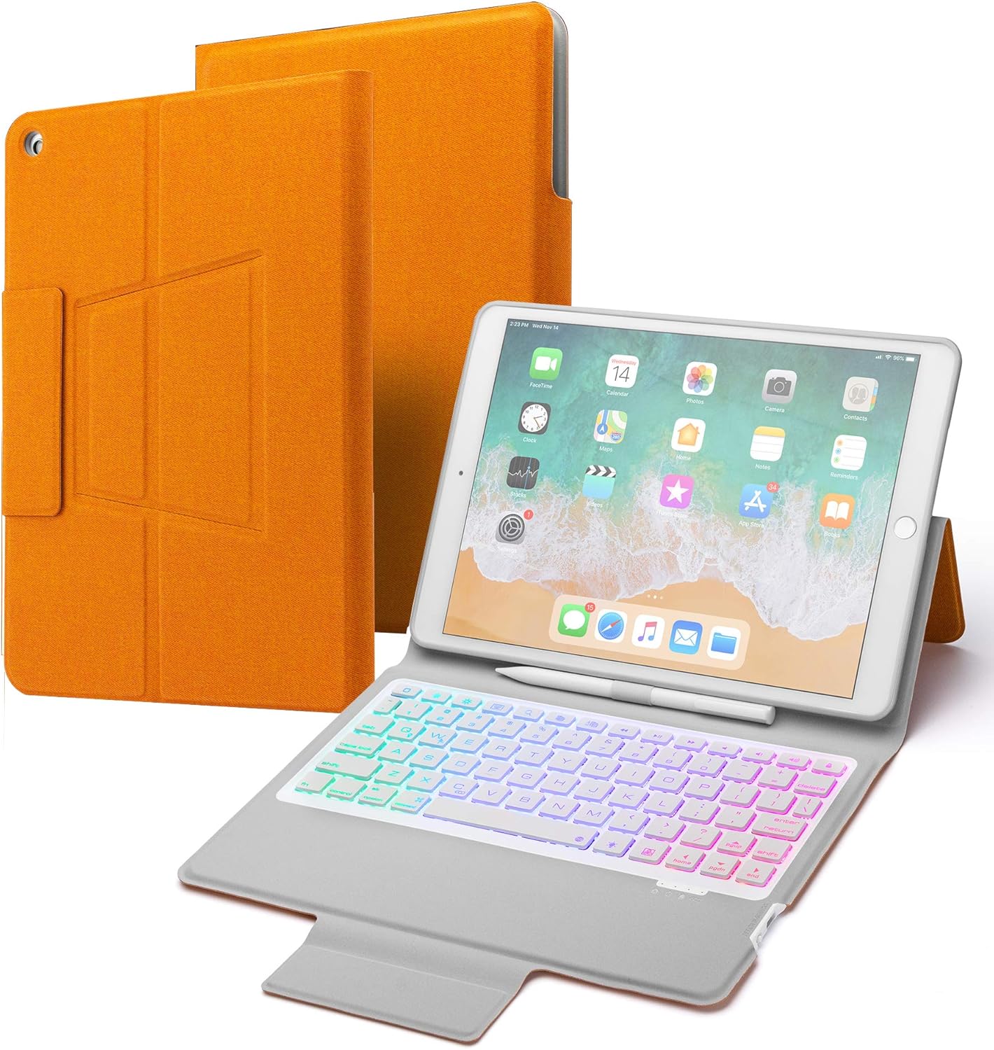CQQDOQ Keyboard Case for iPad 10.2 2019 (7th Generation),7 Colors Backlit Auto Sleep/Wake Wireless Keyboard Slim Folio Case Cover with Built-in Pencil Holder for iPad 10.2” 7th Gen 2019 (Orange)