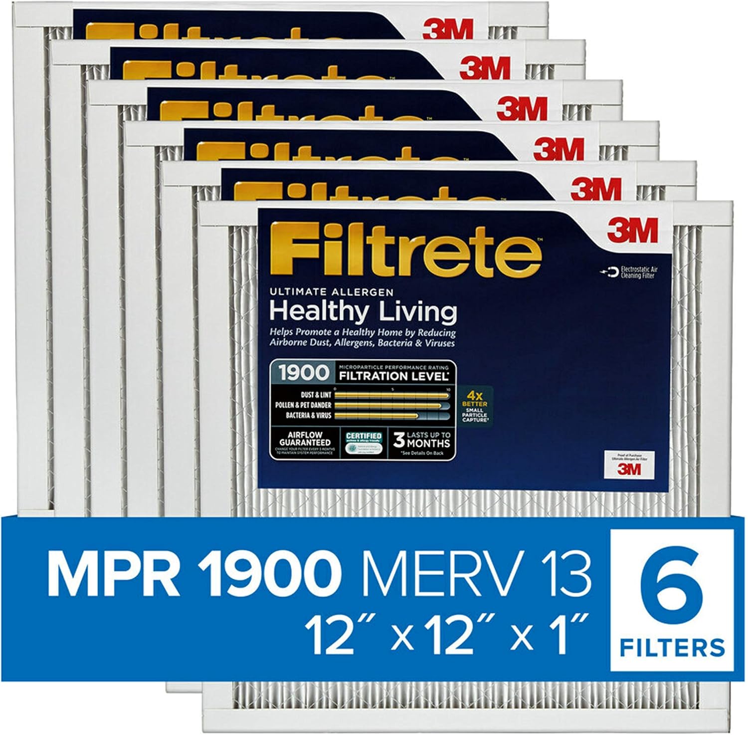 Hоttеѕt Sаlе Filtrete 12x12x1, AC Furnace Air Filter, MPR 1900, Healthy Living Ultimate Allergen, 6-Pack (exact dimensions 11.81 x 11.81 x 0.78)